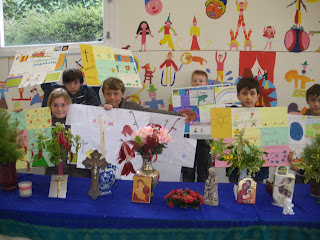 Célébration de Pâques et présentation des panneaux réalisés par classe.
