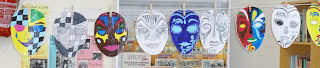Quelques productions des élèves du cycle 3: masques en mode "recto-verso/couleurs-noir et blanc"