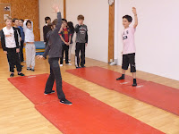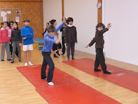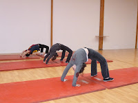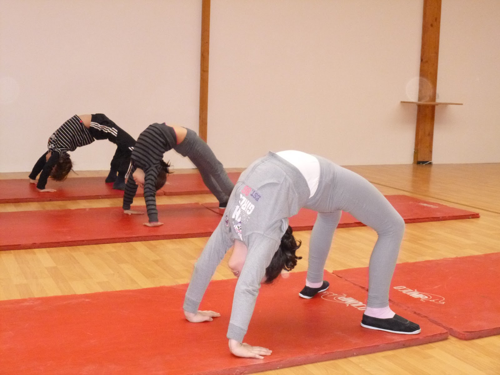 Enchaînements de roulades, souplesses et roues.