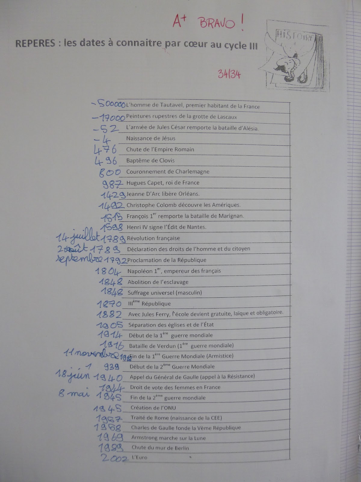 Voici les lauréats du concours sur les "dates historiques à connaître" en CM.