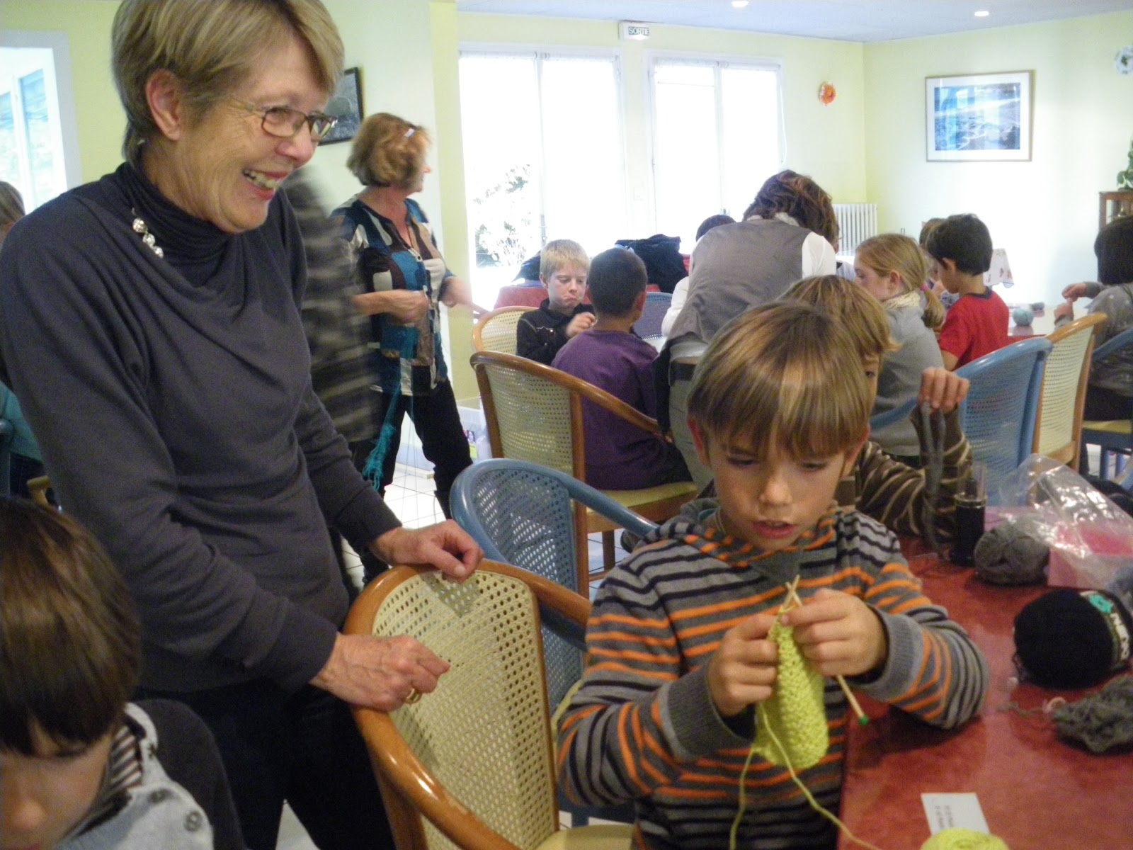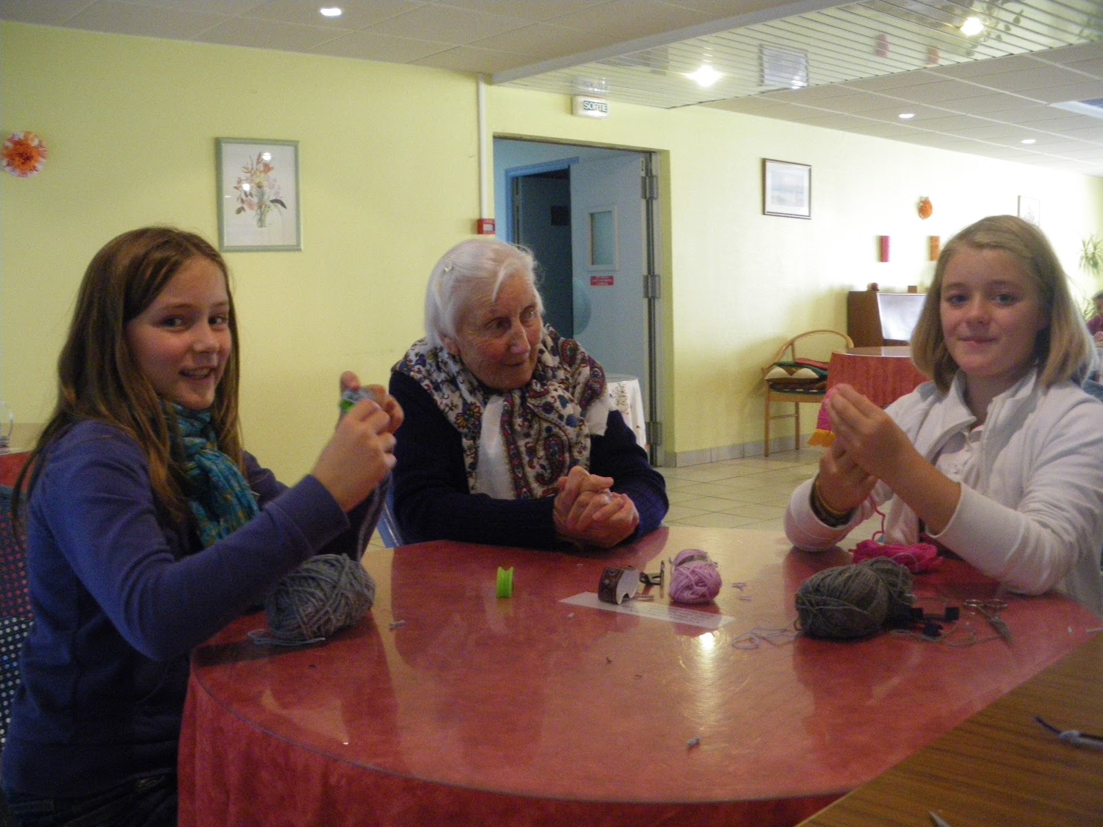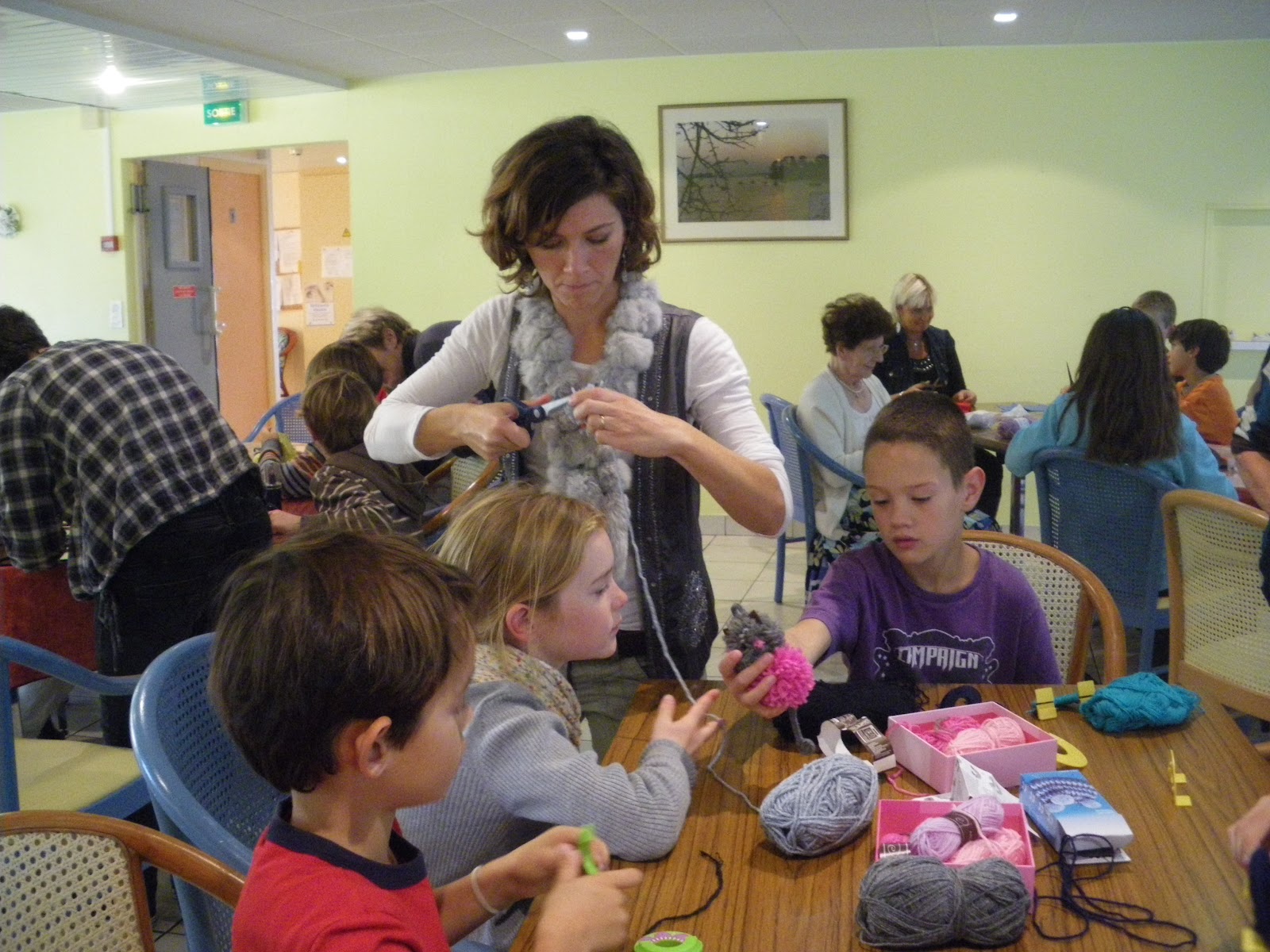 Rencontre entre juniors et séniors autour de la fabrication de pompons, du tricotin ou du tricot