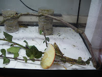 Séance de sciences: observations, dessins légendés, test avec des pommes et mise en place des pondoirs.