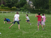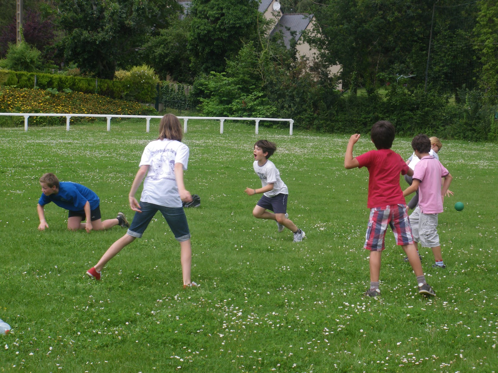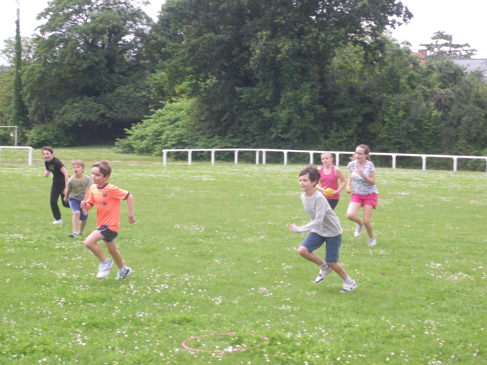 Fin d'année sportive sur le terrain de foot: grande thèque et balle aux prisonniers.